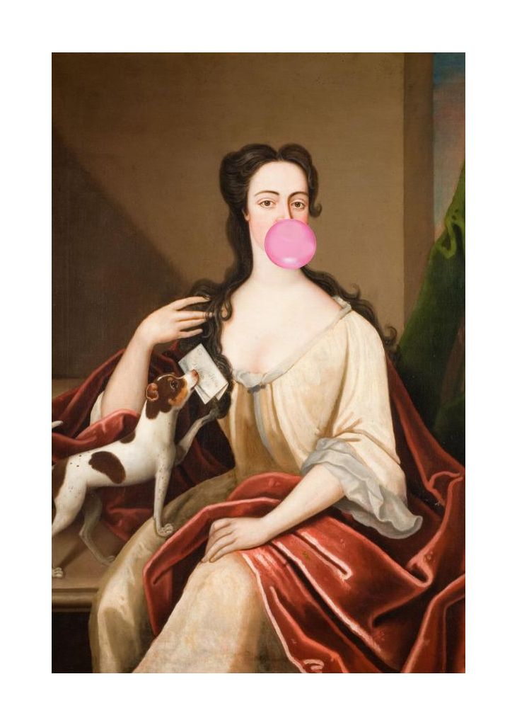 Renaissance Bubble Gum Portrait And Dog Altered Art
